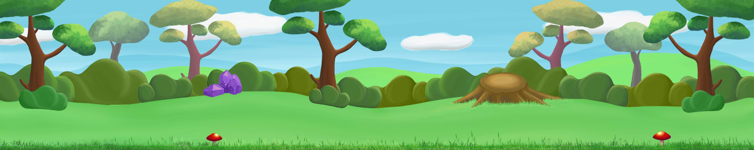To complement her animation, I designed a parallax background in Photoshop, incorporating elements like trees, rocks, and a tree stump I had painted in a previous assignment. Additionally, for a bonus assignment, I brought Wisteria into a simple game provided by my instructor, adding an interactive element to her character.